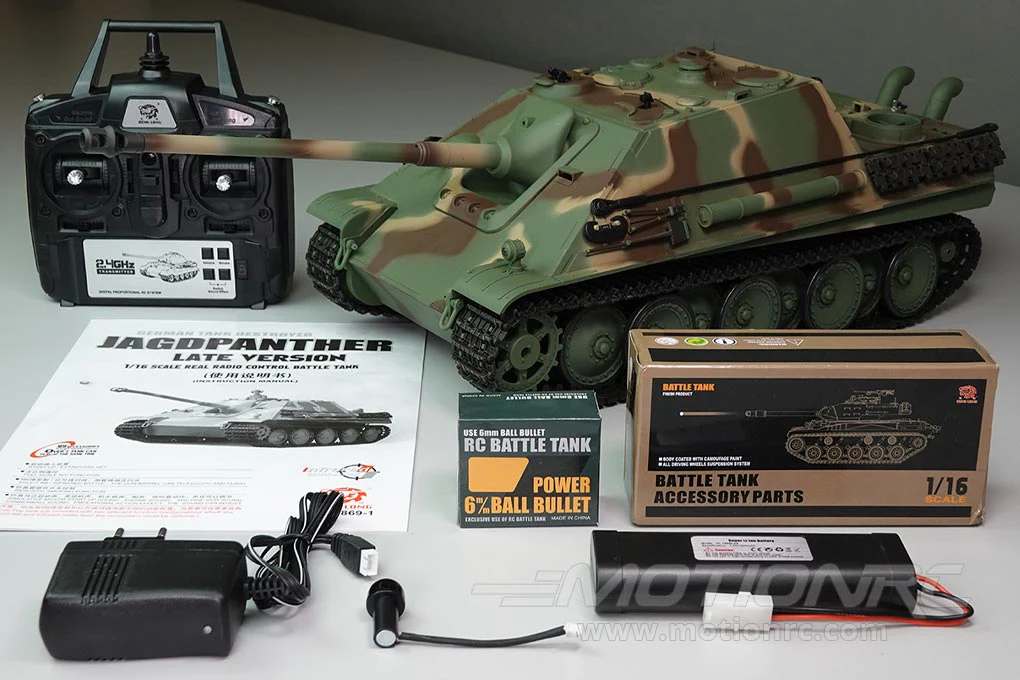The Soviet Union's KV-1's 3878 RC Tank is a remarkable armored vehicle that combines historical significance with modern technological advancements. This 1:16 scale remote-controlled tank precisely replicates the legendary KV-1 tank, which played a crucial role during World War II. With impeccable attention to detail, the model boasts a durable metal chassis, realistic turret movements, and a formidable 320-degree rotating turret. This RC tank features a powerful motor for smooth maneuverability across various terrains and a realistic firing function that launches small plastic projectiles. It also includes a high-capacity battery that provides extended playtime. The tank's remote control offers precise control over its movements, allowing enthusiasts to experience the thrill of commanding a historic war machine. The KV-1's 3878 RC Tank is not just a toy but a culmination of craftsmanship and historical significance, making it a must-have for collectors and enthusiasts alike.